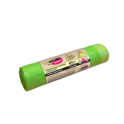 Мешки для мусора ЭКО Натурал, изготовленные на 70% из переработанного пластика, отличаются прочностью и удобными завязками.