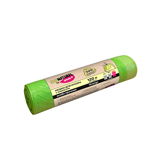 Мешки для мусора ЭКО Натурал, изготовленные на 70% из переработанного пластика, отличаются прочностью и удобными завязками.